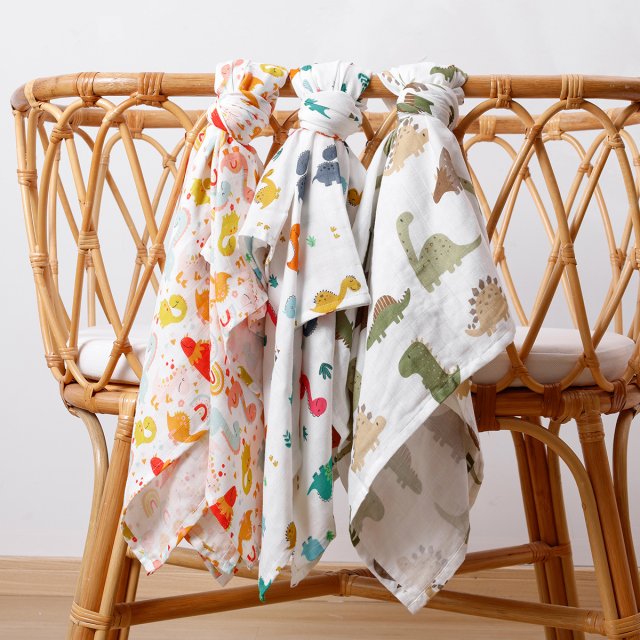 Cute Dinosaur Print Muslin Swaddle Blanket